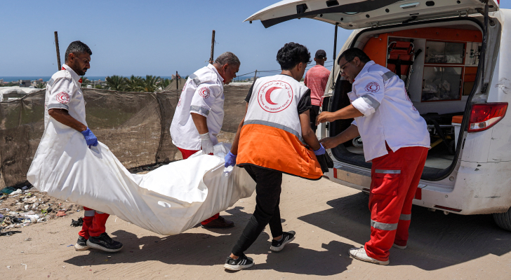 طواقم الإسعاف تنقل جثمان شهيد في رفح
