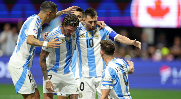 لاعبو الأرجنتين يحتفلون بهدف في مرمى كندا