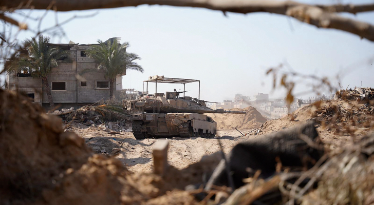 شرها الجيش الإسرائيلي دبابة إسرائيلية على الأرض في قطاع غزة