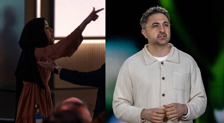 مصطفى سليمان، الرئيس التنفيذي لقطاع الذكاء الاصطناعي في مايكروسوفت(يمينا)، المبرمجة المغربية إبتهال أبو السعد (يسارا)