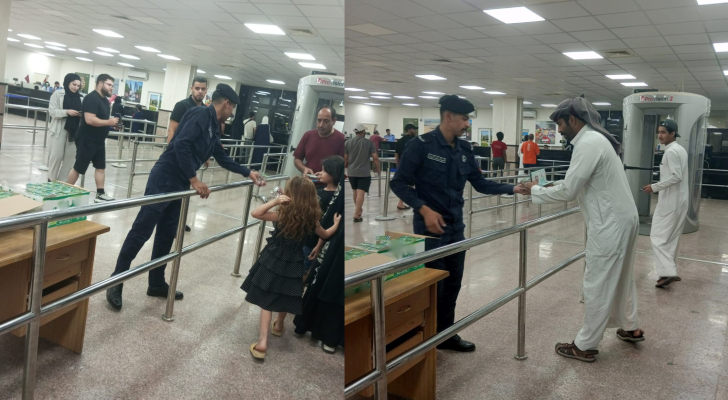 وكان رجال الأمن العام في مركز حدود العمري، والمراكز التابعة لإدارة الإقامة والحدود، استقبلوا العائدين إلى أرض الوطن، وزوار المملكة، والضيوف، بالماء للتبريد عنهم، كما وزعوا مياه الشرب على المسافرين.