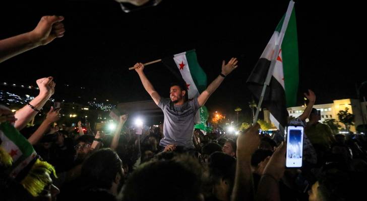 يحتفل الناس في ساحة الأمويين بدمشق بعد إعلان الرئيس الأمريكي رفع العقوبات عن سوريا
