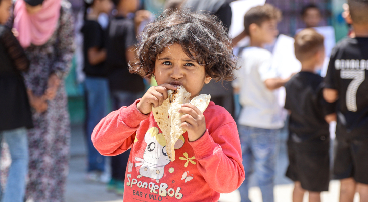 طفلة فلسطينية تأكل الخبز في مدينة غزة