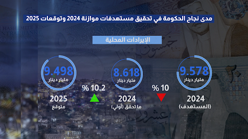 واستنادا لهذه التغيرات، ارتفع عجز الموازنة العامة 2.440 مليار دينار وفق الارقام الاولية للعام الحالي وباعلى من المستهدف، فيما توقعت انخفاض محدود في أرقام موازنة 2025.