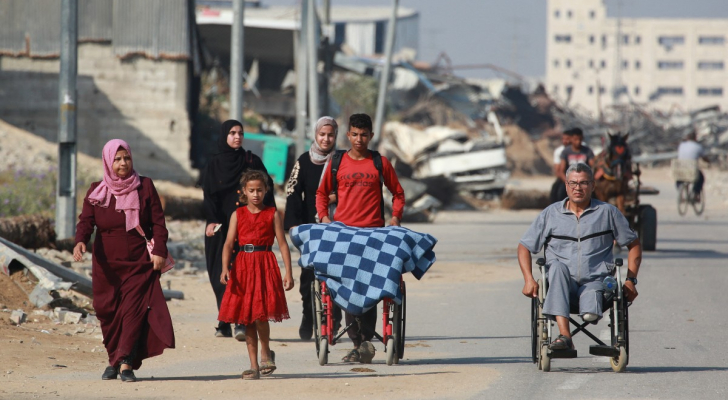 مدنيون نازحون يفرون من شرق البريج وسط قطاع غزة بسبب قصف الاحتلال على المدينة