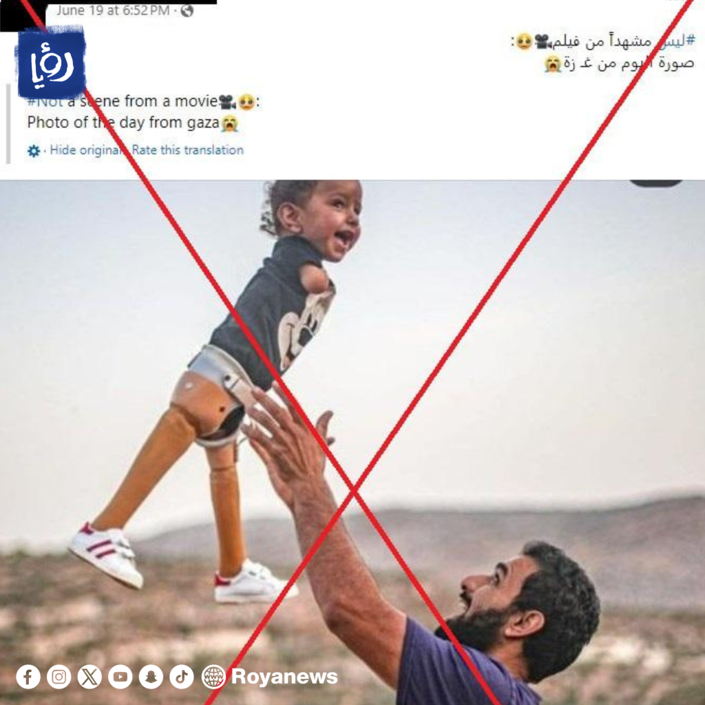 تداولت عدة صفحات صورا لطفل مبتور الأطراف، وقيل إن الصورة لأحد أطفال قطاع غزة، الذي يشهد عدوانا متواصلا، وجاء في التعليقات المرافقة أن الصورة "من غزّة اليوم"، في التاسع عشر من حزيران/يونيو الجاري. وعند البحث العكسي للصورة يتبين أنها نشرت عام 2020، وأنها تُظهر طفلاً سورياً أجرى عملية لتركيب أطراف اصطناعية في تركيا آنذاك.