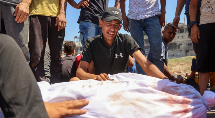 شاب فلسطيني يبكي بالقرب من أحد الشهداء في حي التفاح بمدينة غزة