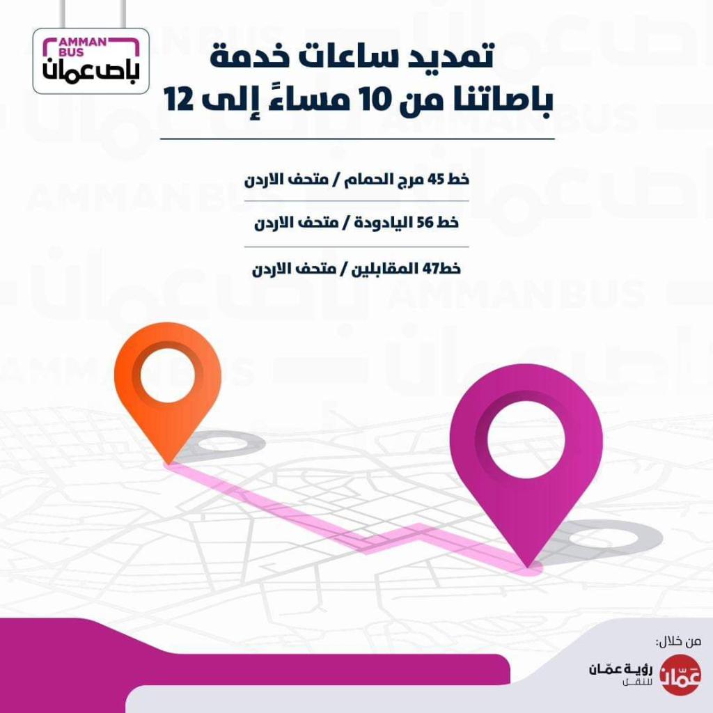 وأضافت الأمانة، أنه ستستمر خدمة باص عمان حتى الساعة 12 منتصف الليل، لتوفير وسيلة نقل مريحة وآمنة لمشجعي منتخب النشامى.