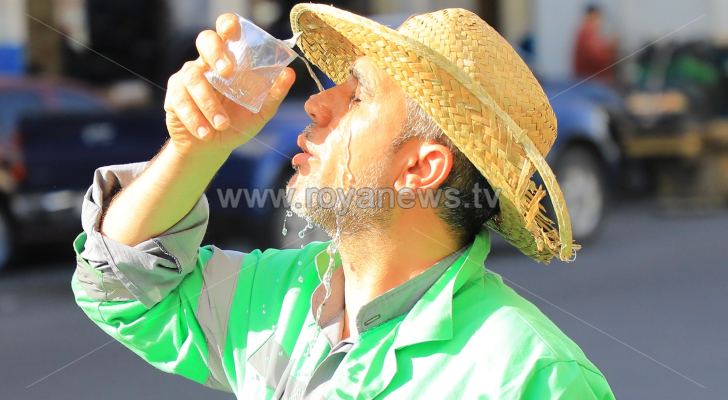 عامل وطن يسكب المياه على وجهه في ظل ارتفاع درجات الحرارة