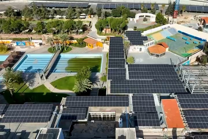 تم تركيب 5388 خليه شمسية (كهروضوئية) تغطي مساحة تقريبية قدرها 25 الف متر مربع