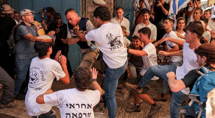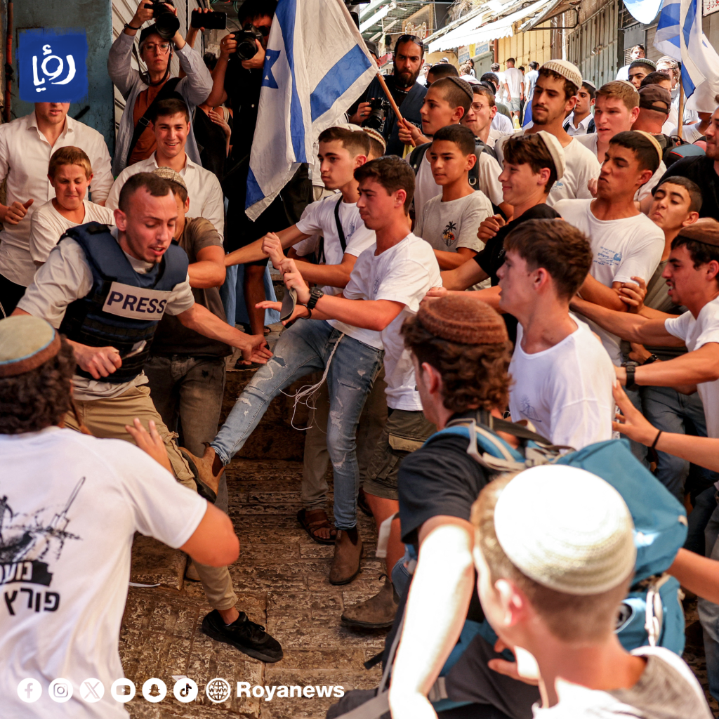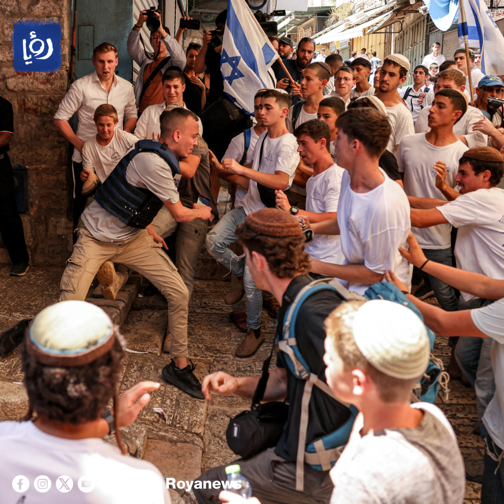 وجاء ذلك خلال مسيرة الأعلام التي يقيمها المستوطنون في القدس المحتلة منذ صباح الأربعاء، حيث تجمع المئات في باب العمود بالبلدة القديمة في القدس المحتلة، استعدادا للمسيرة الاستفزازية.