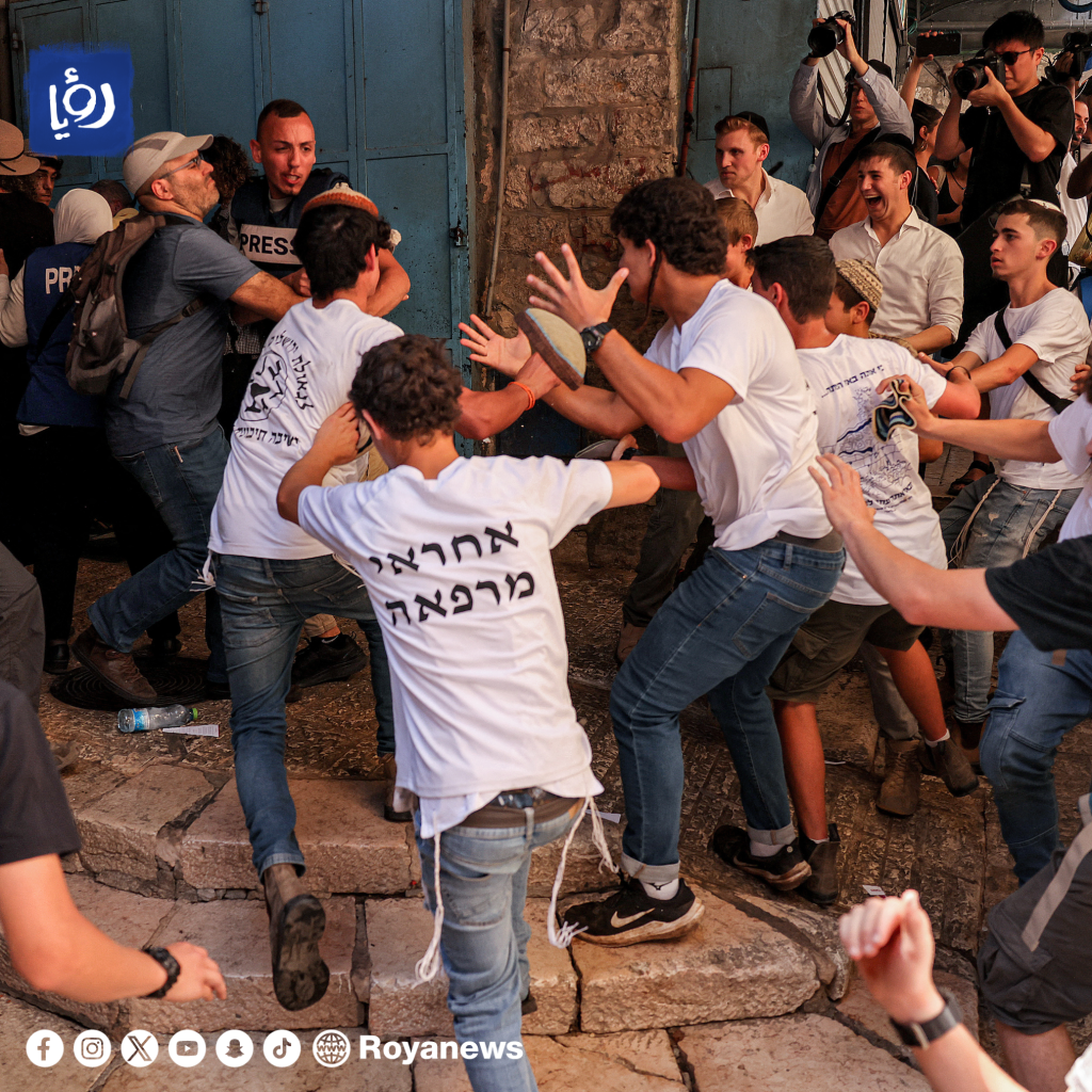 في مشهد استفزازي يوثق معاناة الفلسطينيين على مدى عقود، اعتدى عشرات المستوطنين على مصور صحفي فلسطيني في البلدة القديمة بالقدس المحتلة.