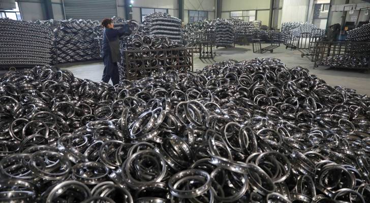 عامل يقوم بمعالجة حلقات من الفولاذ لغاية التصدير