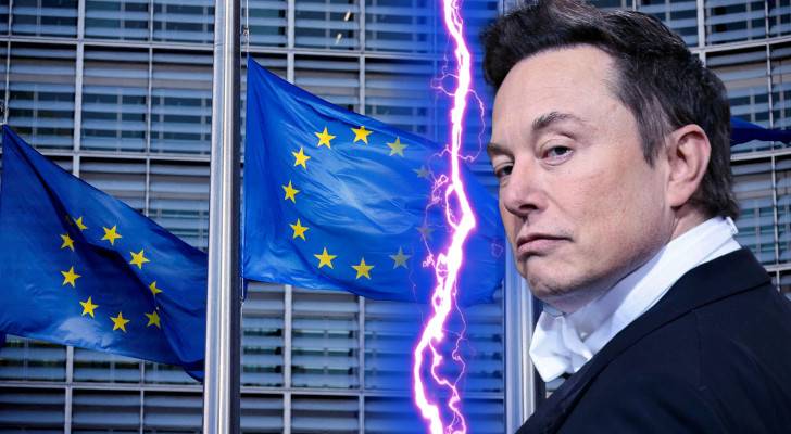 الملياردير الأمريكي إيلون ماسك وعلم المفوضية الأوروبية